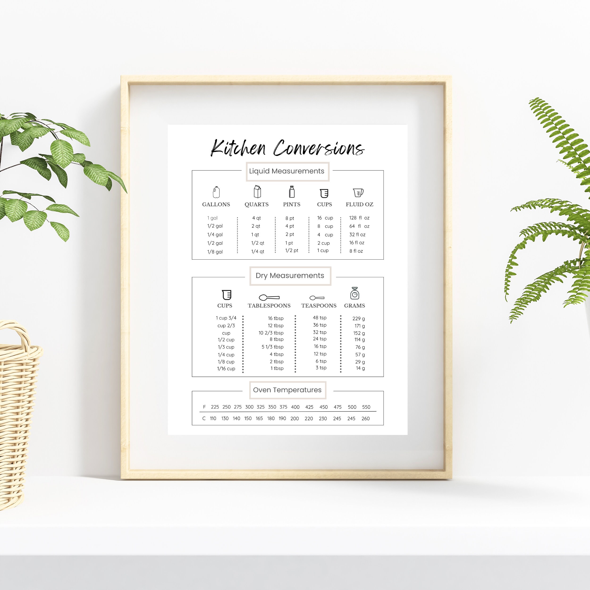 Kitchen Conversion Chart Printable Art (digital Download) Etsy