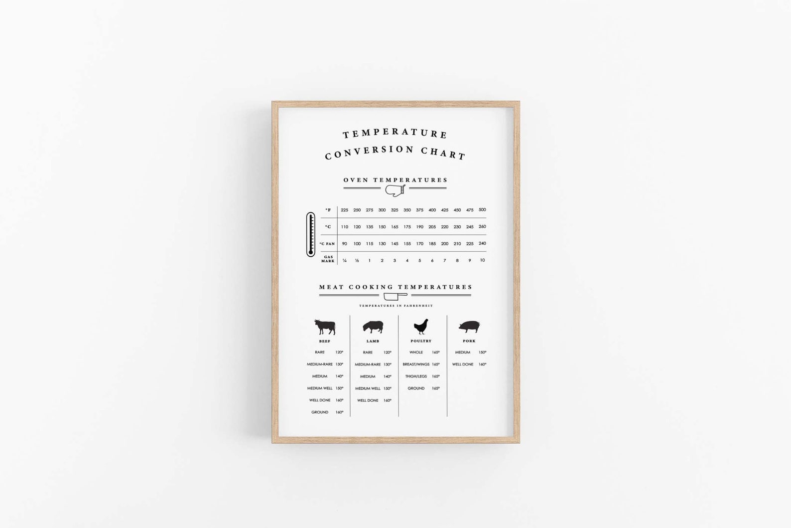 Kitchen / Temperature Conversion Chart Print Set Kitchen Decor Cheat