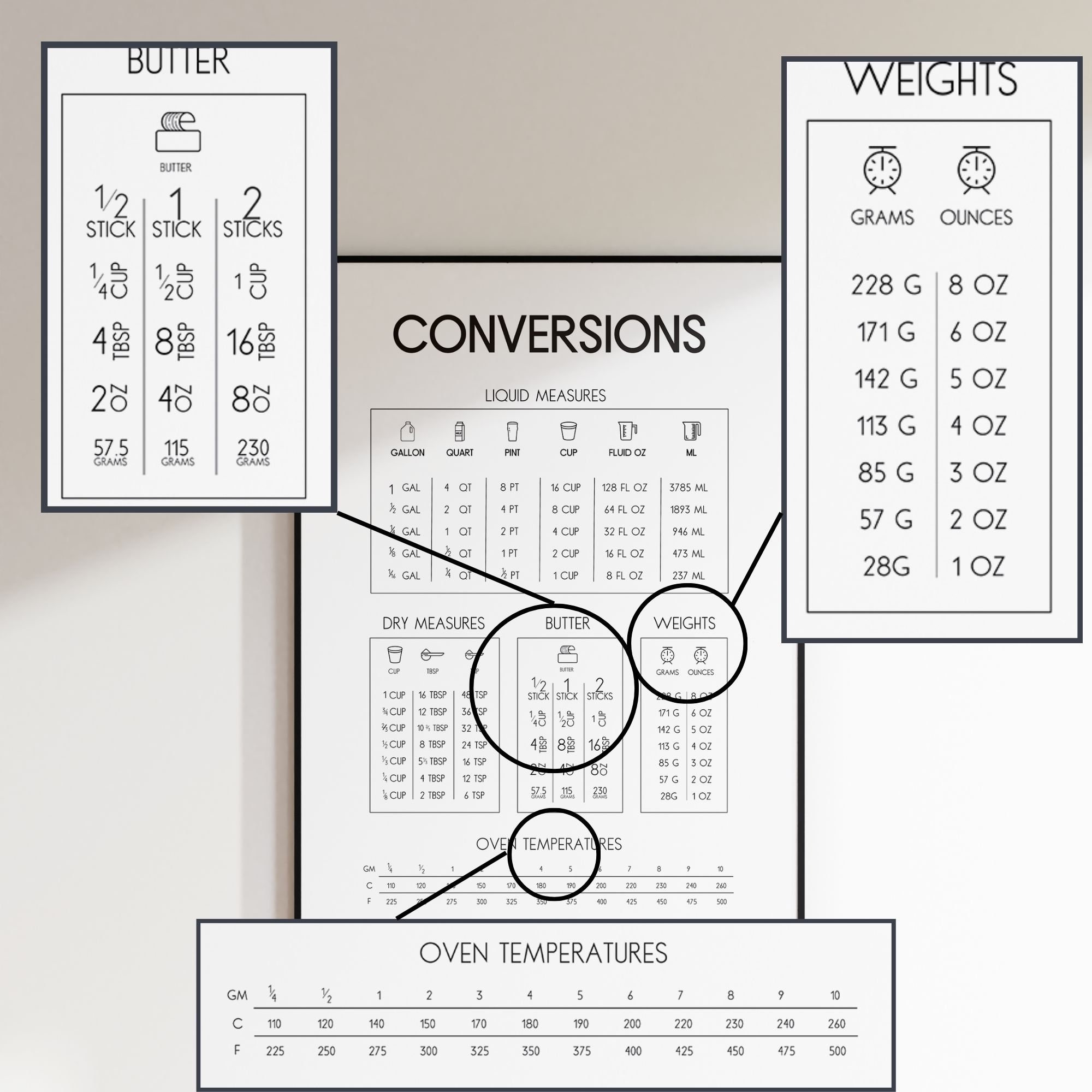Kitchen Conversion Chart Print // Kitchen Temperature Weight Etsy
