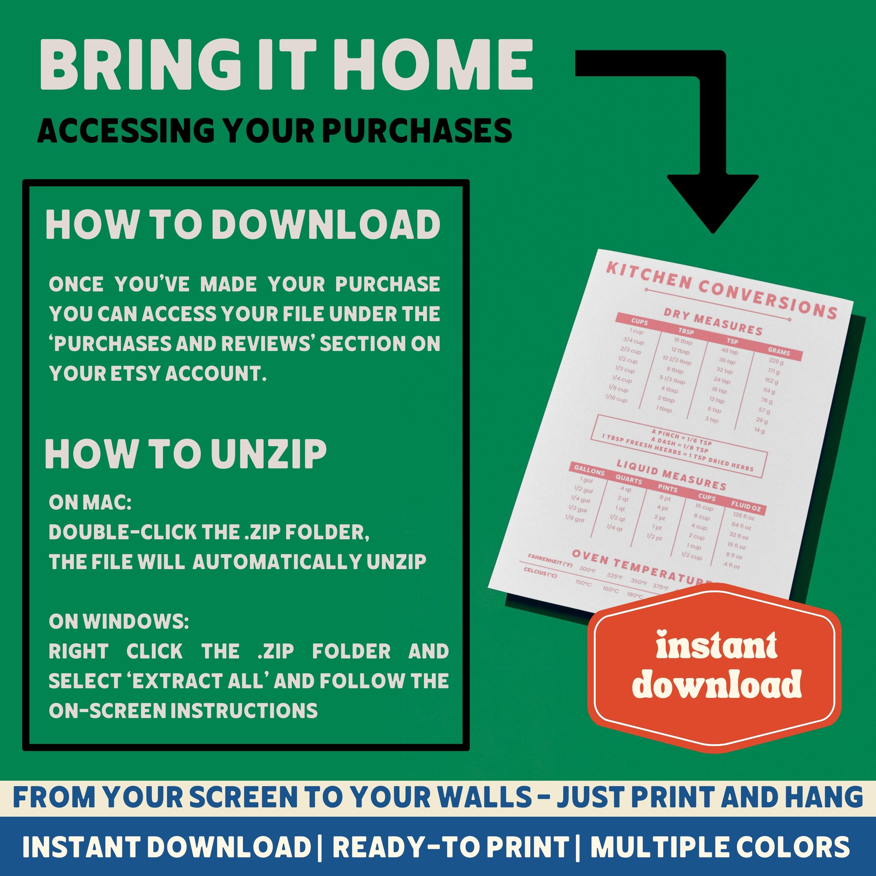 PRINTABLE DIGITAL DOWNLOAD // Kitchen Conversion Chart Print // Kitchen