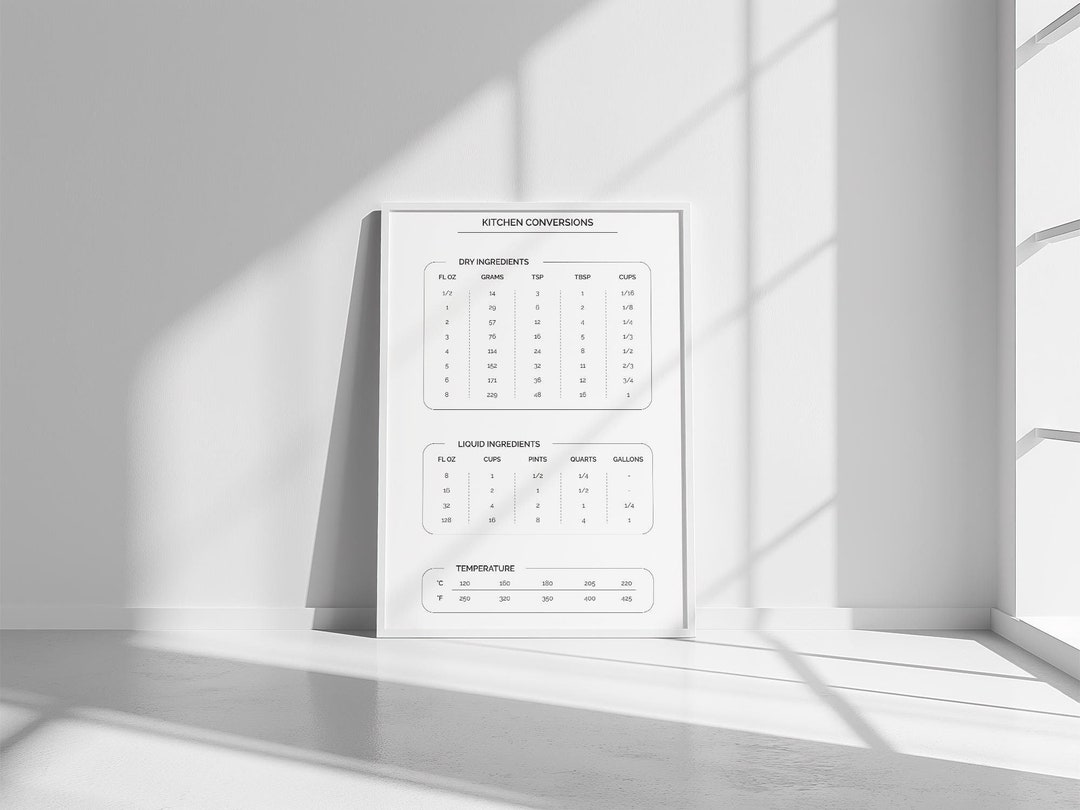 Kitchen Conversion Chart: Oven Temperatures Measurement Guide (digital
