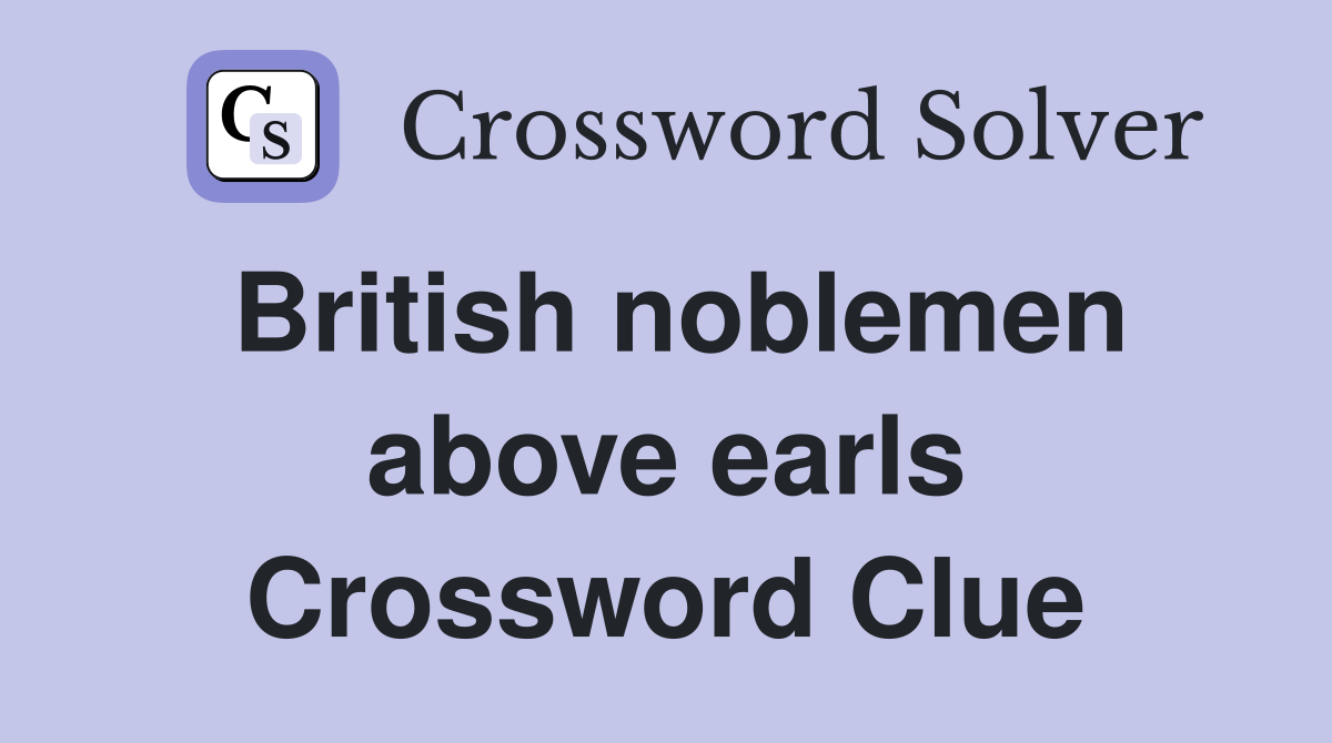 British noblemen above earls Crossword Clue Answers Crossword Solver