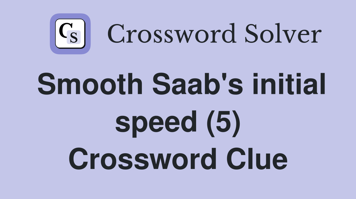 Smooth Saab #39 s initial speed (5) Crossword Clue Answers Crossword Solver