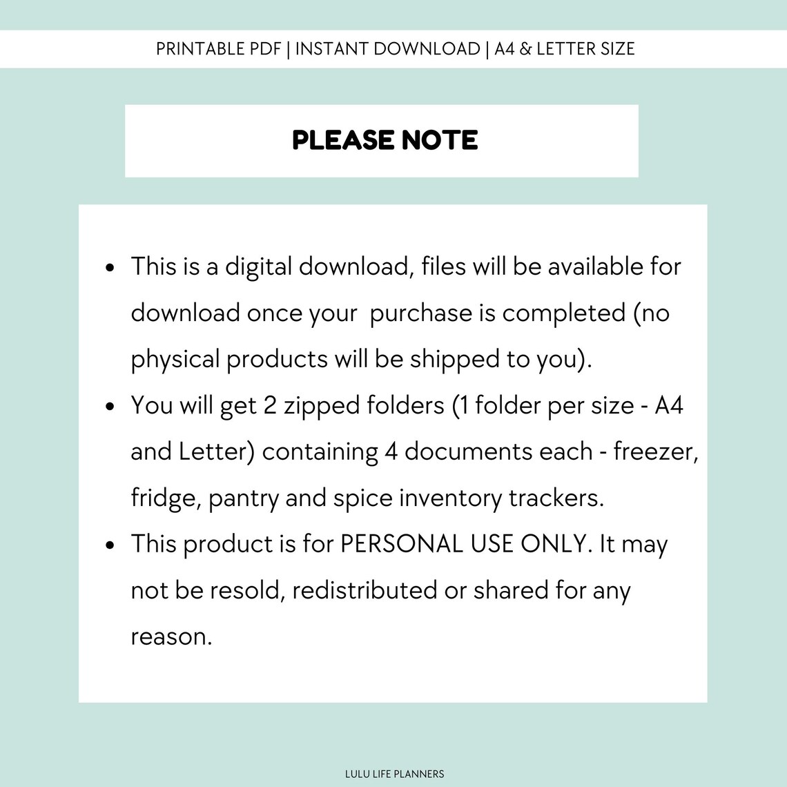 Printable Kitchen Inventory Template Freezer Fridge Pantry Spice