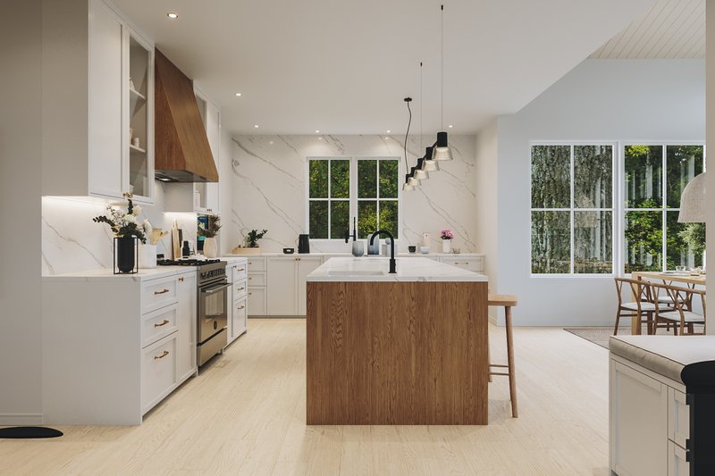 Modern Kitchen Design with Wooden Cabinets and Marble Countertops