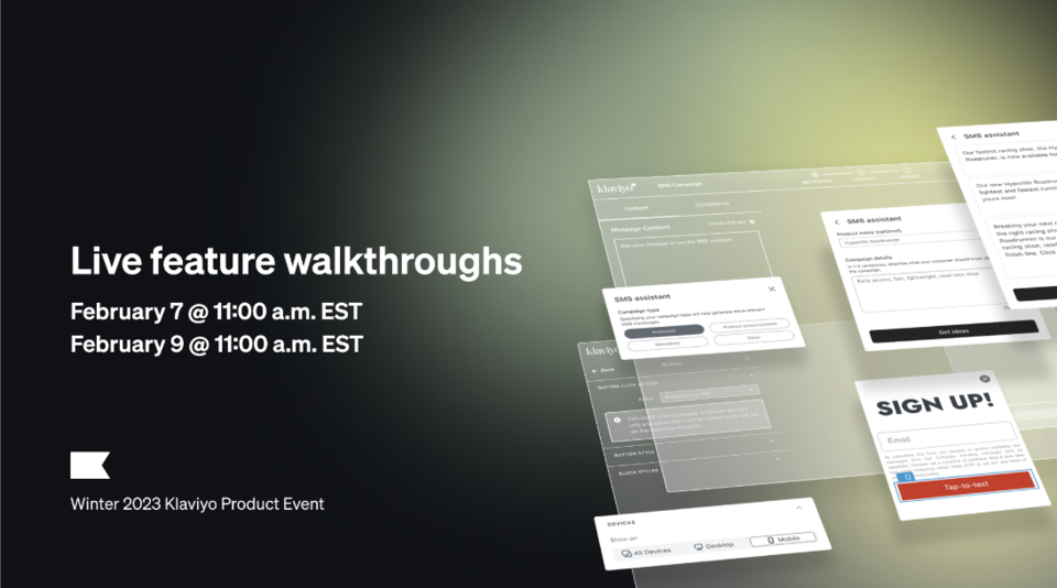 Webinar: Klaviyo Product Event Live feature walkthroughs by Klaviyo