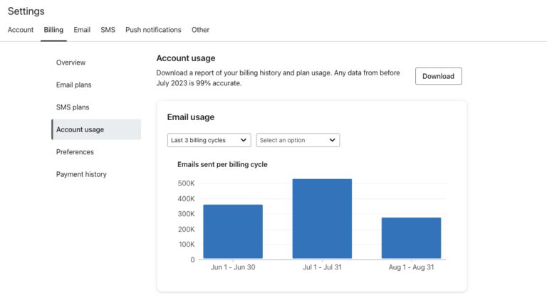 Billing Account Usage Tracker Klaviyo Product Features