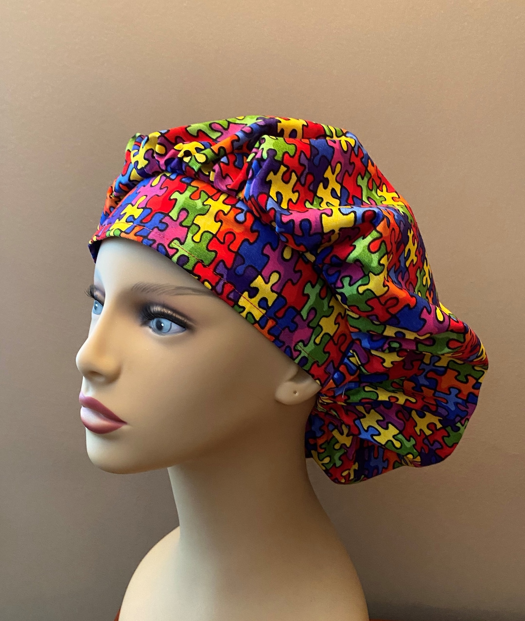 Monogrammed Autism Puzzle Pieces Bouffant Cap Puzzle Fabric Cap