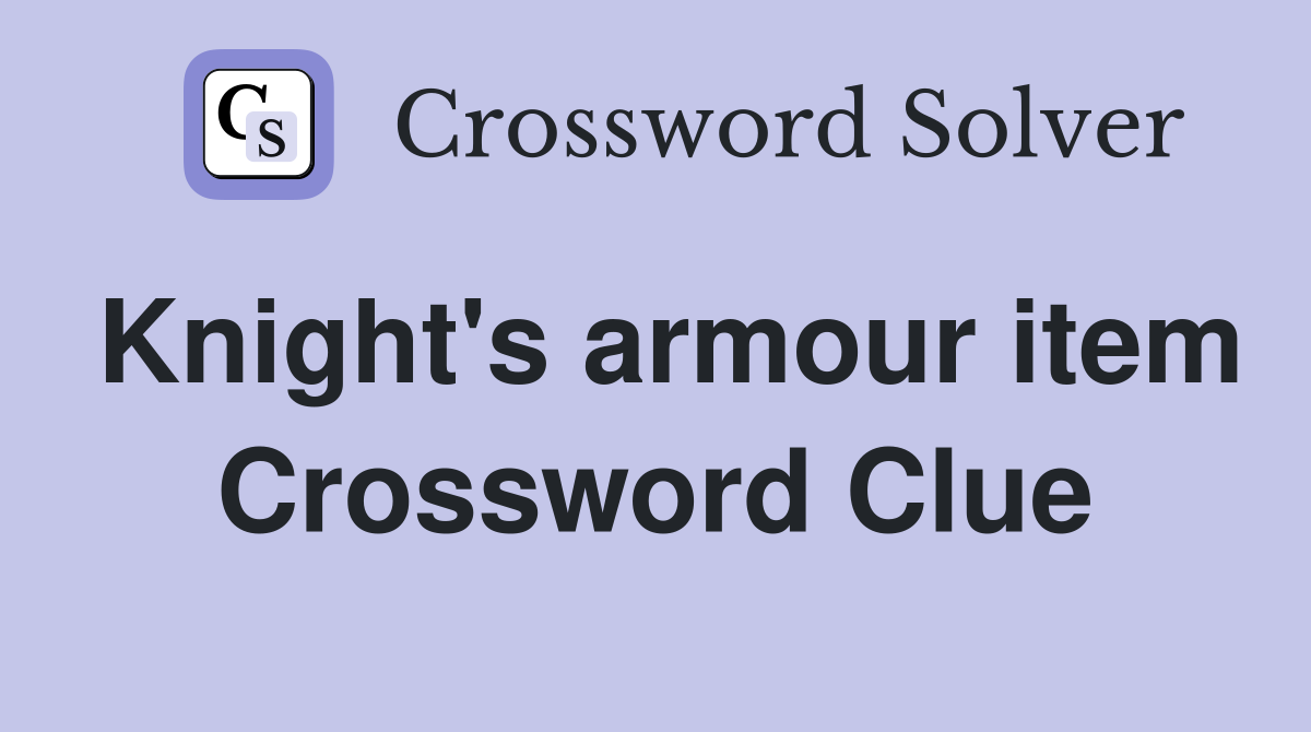 Knight s armour item Crossword Clue Answers Crossword Solver