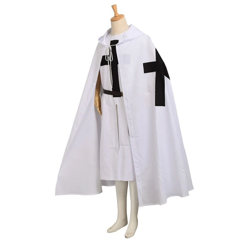 Medieval Knights Templar Tunic Hooded Cloak Men Cosplay Reenactment