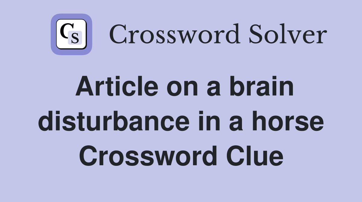 Article on a brain disturbance in a horse Crossword Clue Answers