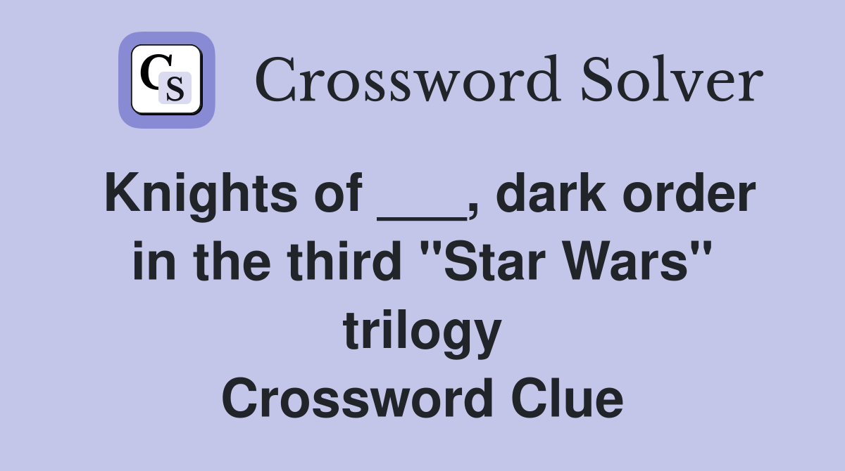 Knights of dark order in the third quot Star Wars quot trilogy Crossword Clue