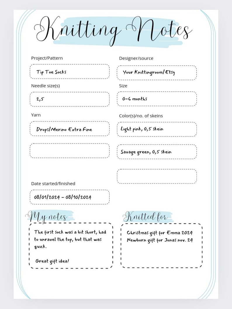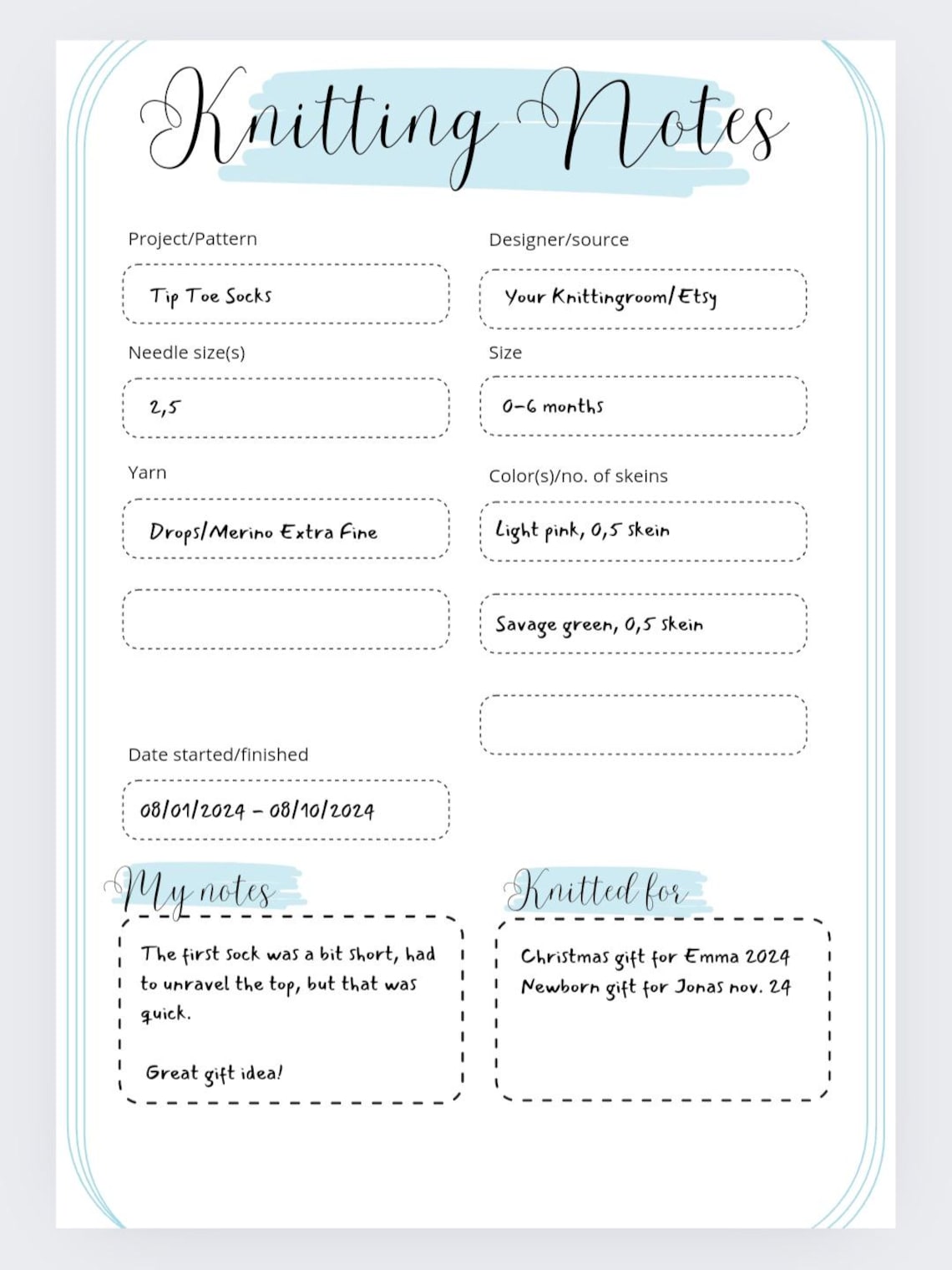 Printable Knitting Notes PDF Knitting Journal Planner Knitting