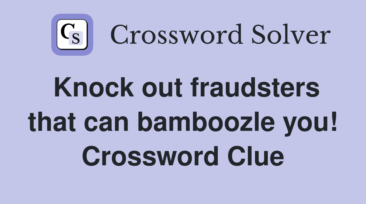 Knock out fraudsters that can bamboozle you Crossword Clue Answers