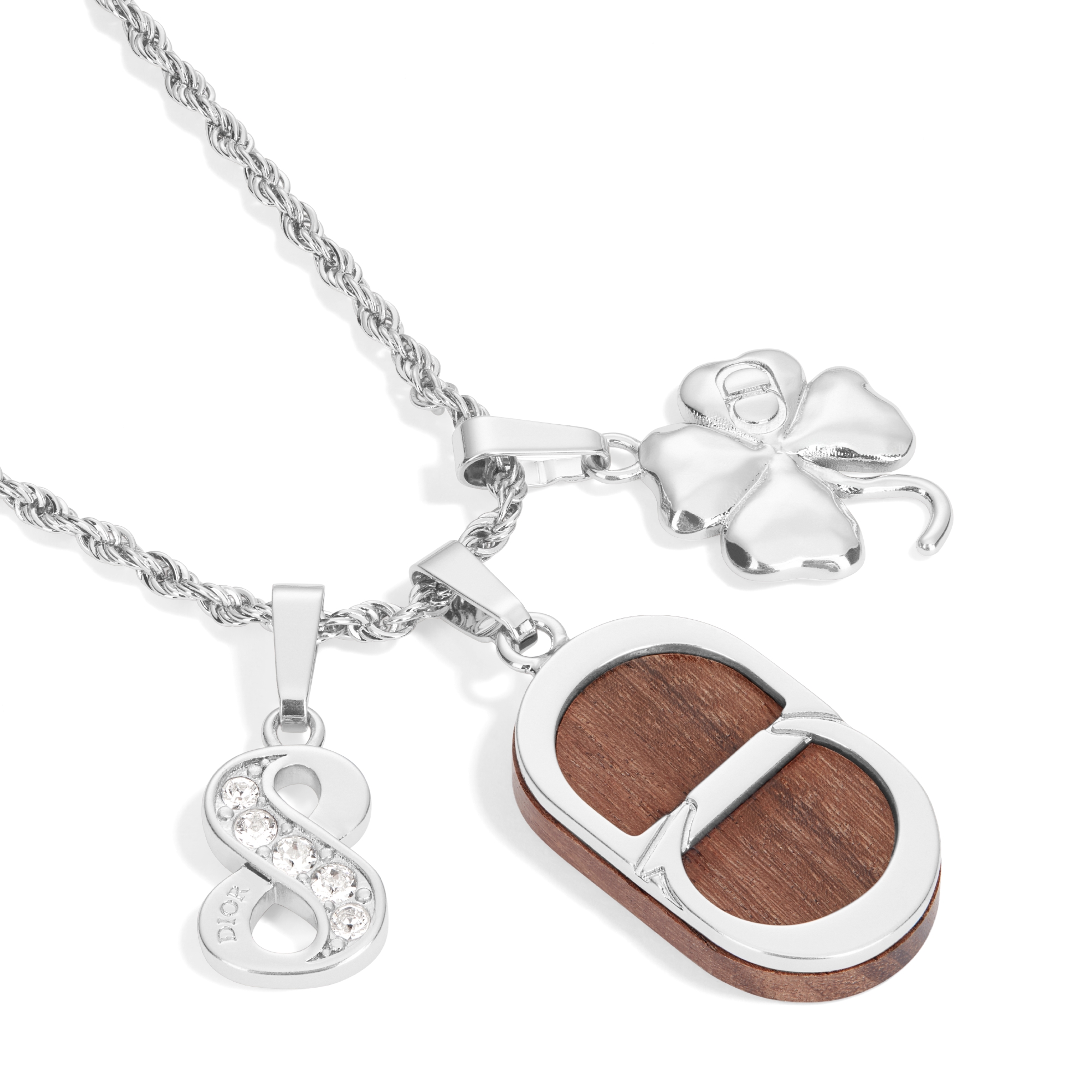 Knock on Wood Pendant Necklace Silver Finish Brass Santos Wood and