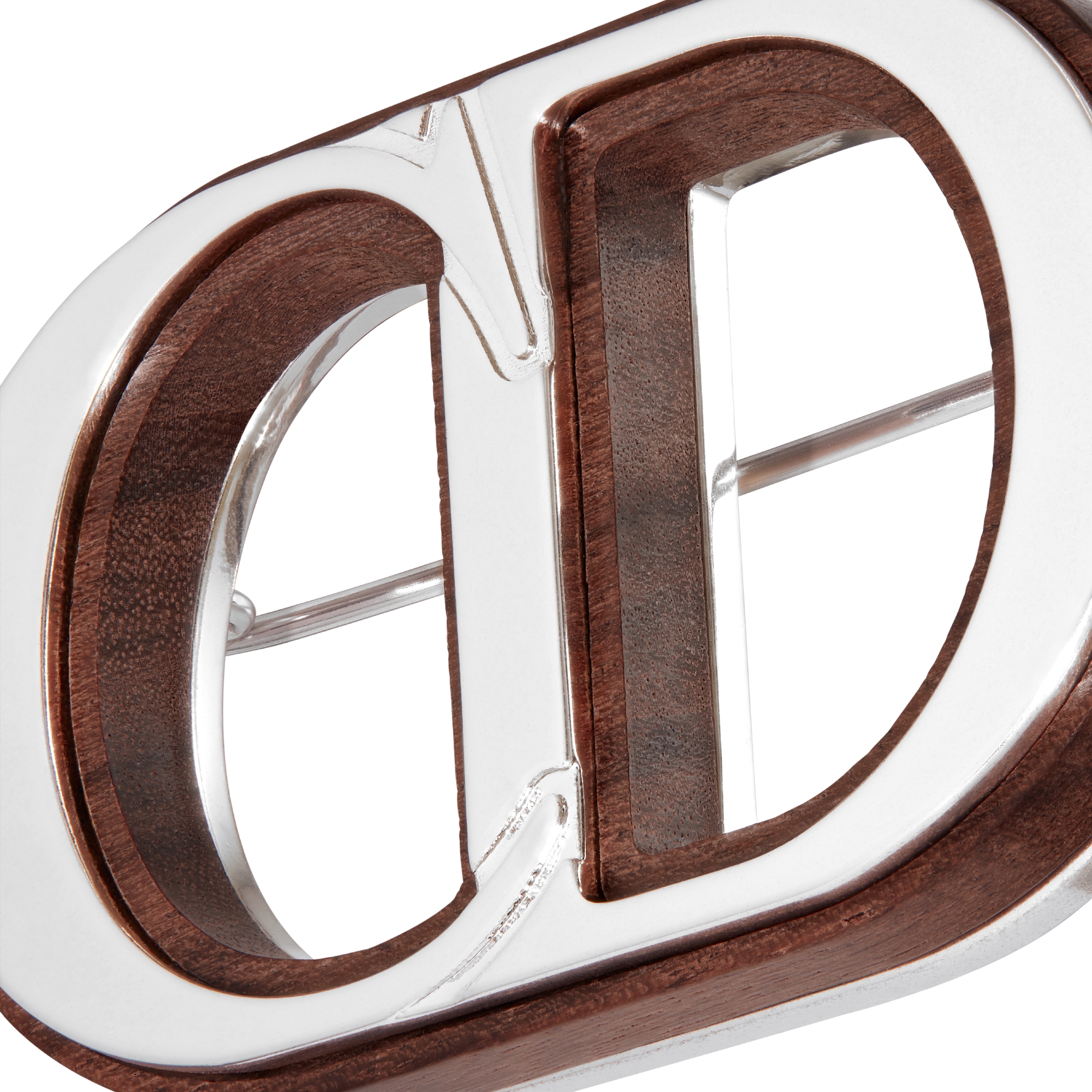 Knock on Wood Brosche Messing mit Silber Finish und Santos Holz DIOR