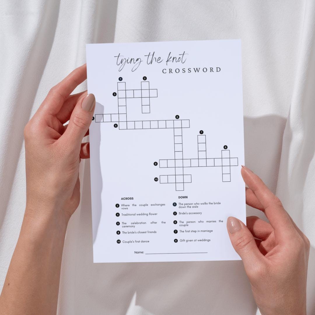 Tying the Knot Crossword Wedding Crossword Puzzle Wedding Games