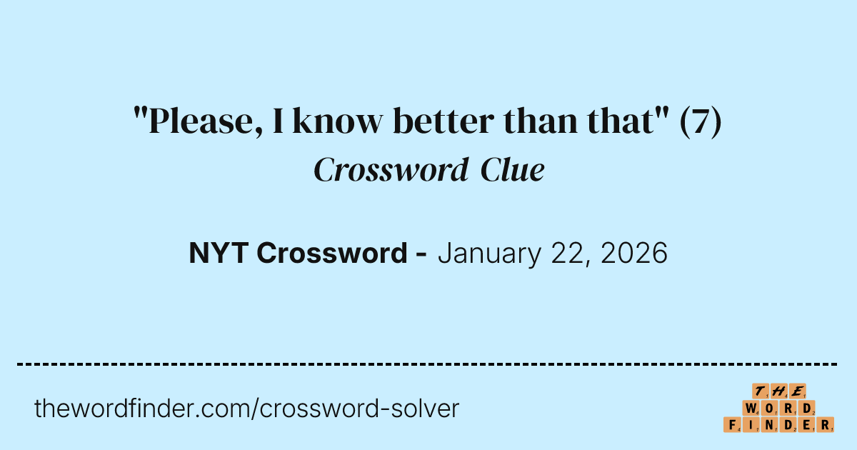 quot Please I know better than that quot Crossword Clue NYT Crossword Answers