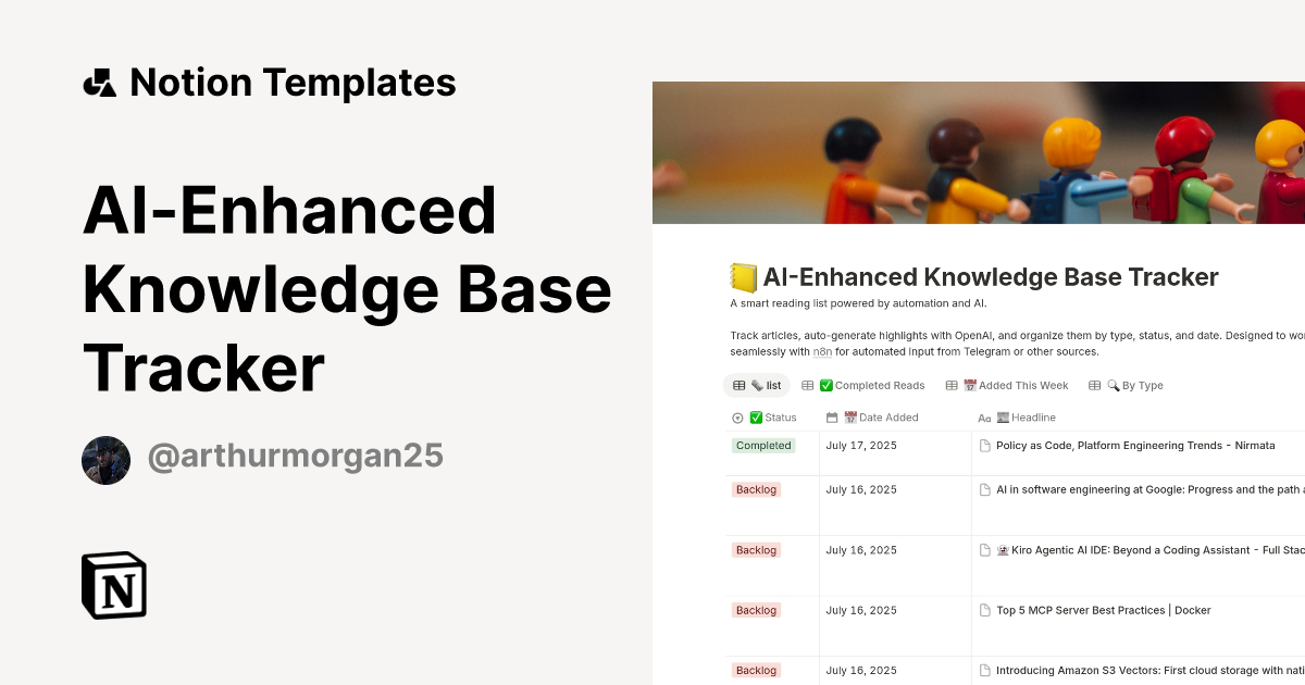 AI Enhanced Knowledge Base Tracker Template by arthurmorgan25 Notion