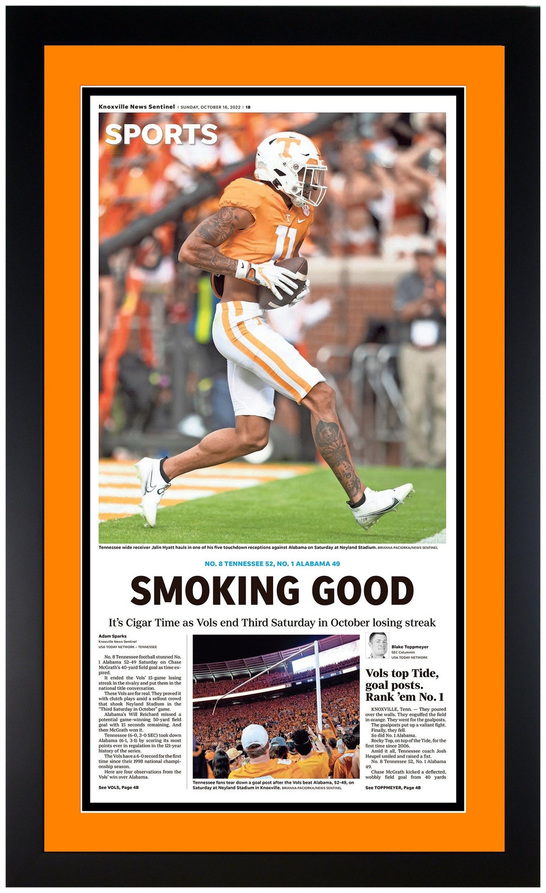 Tennessee WR Jalin Hyatt #39 s and story behind Peyton Manning cigar photo