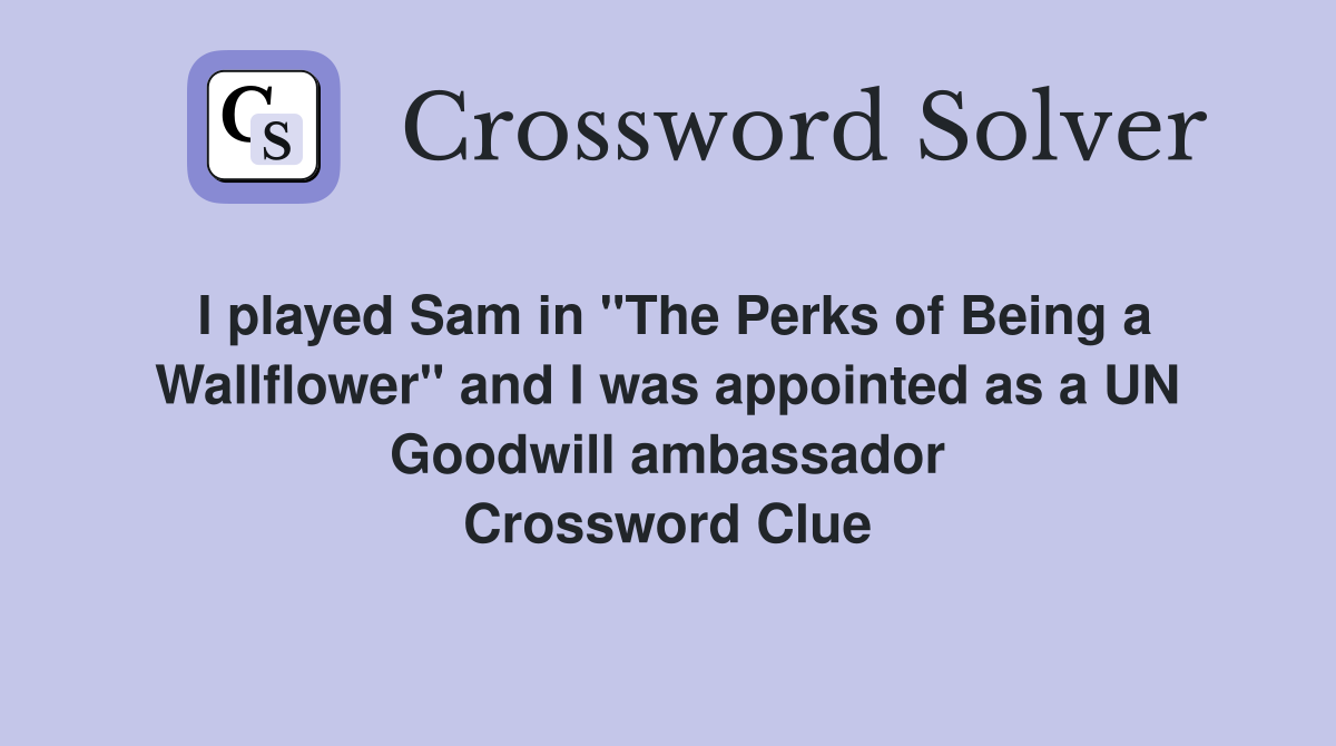 I played Sam in quot The Perks of Being a Wallflower quot and I was appointed