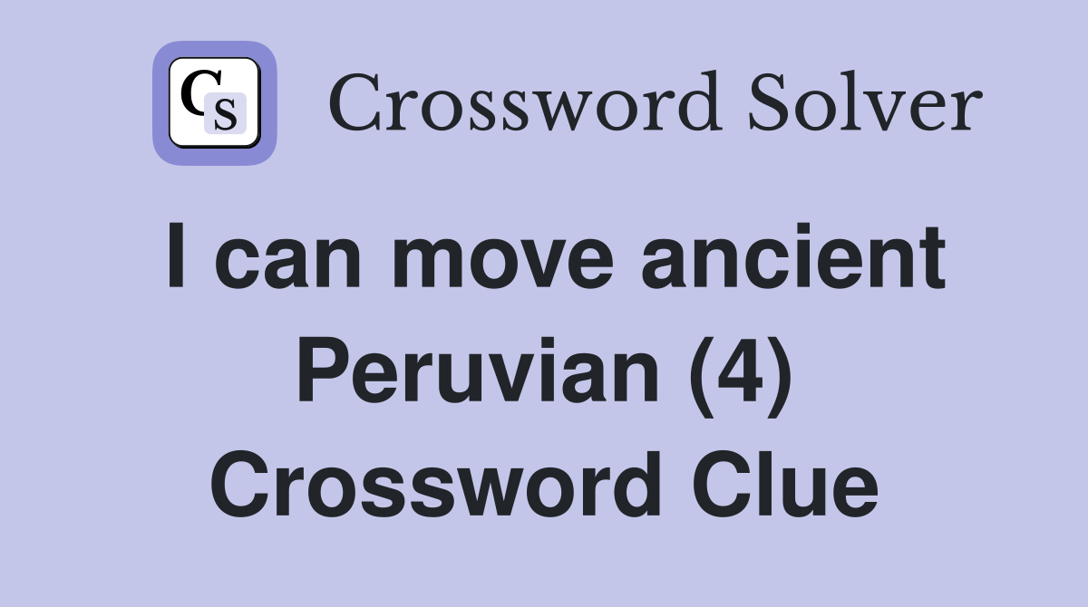 I can move ancient Peruvian (4) Crossword Clue Answers Crossword Solver