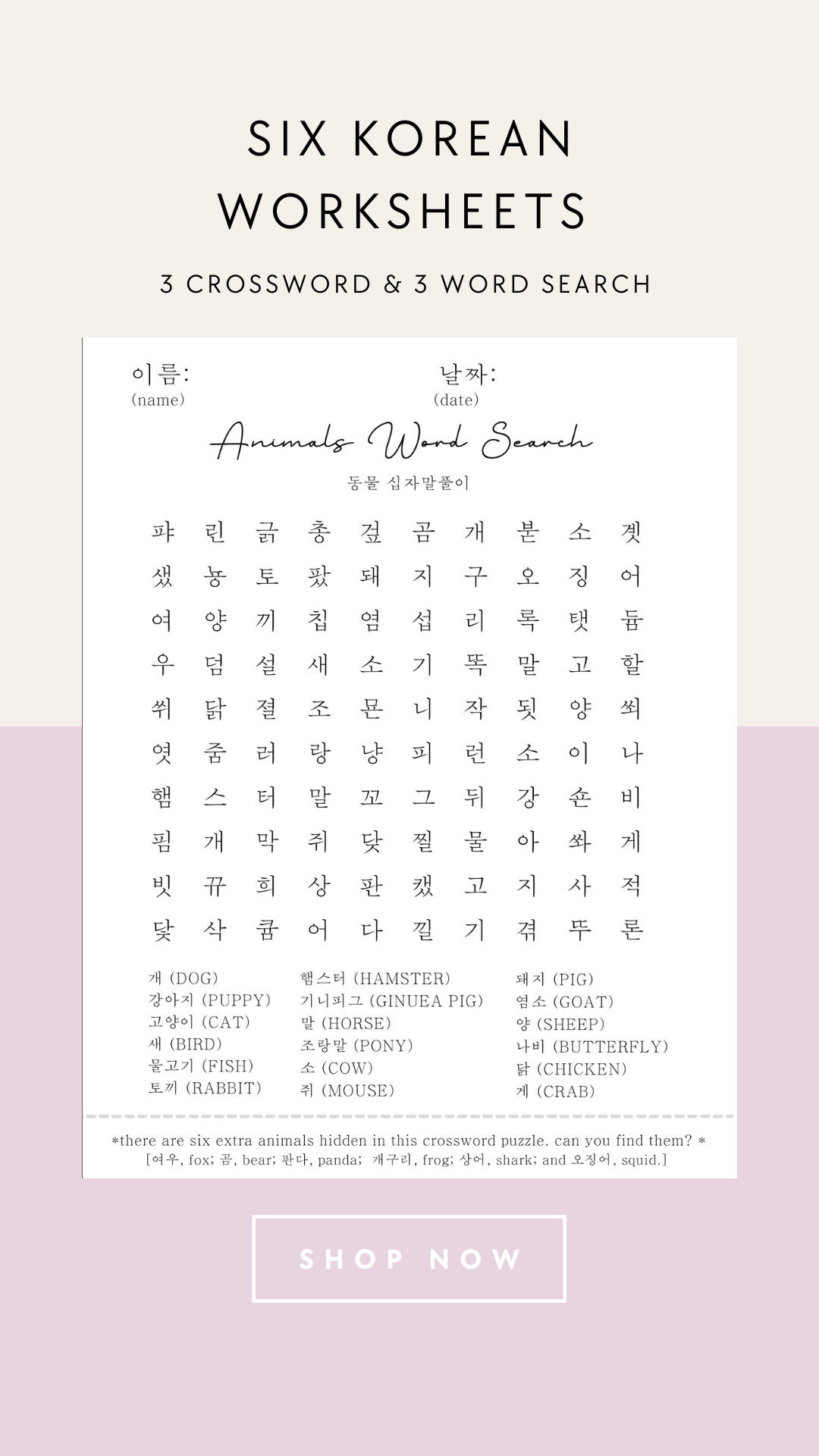 Korean Wordsearch Bundle Hangul Alphabet Crossword Printable Korean