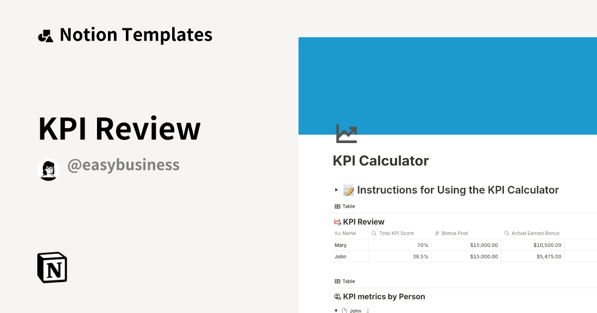 KPI Review Template by Easy Business Notion Marketplace