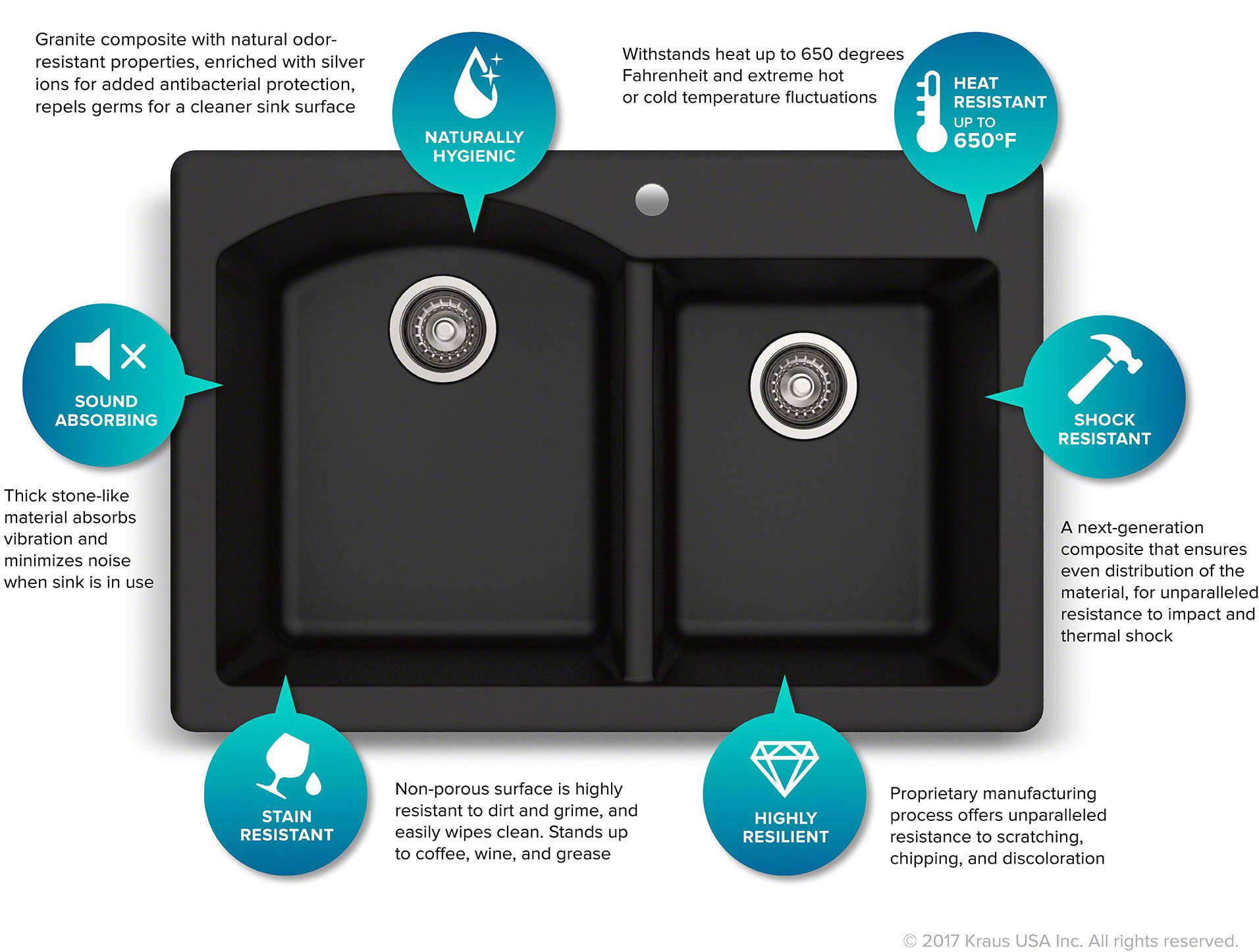 Kraus KGD 52 Forteza 33 quot Composite Granite Kitchen Sink for Black