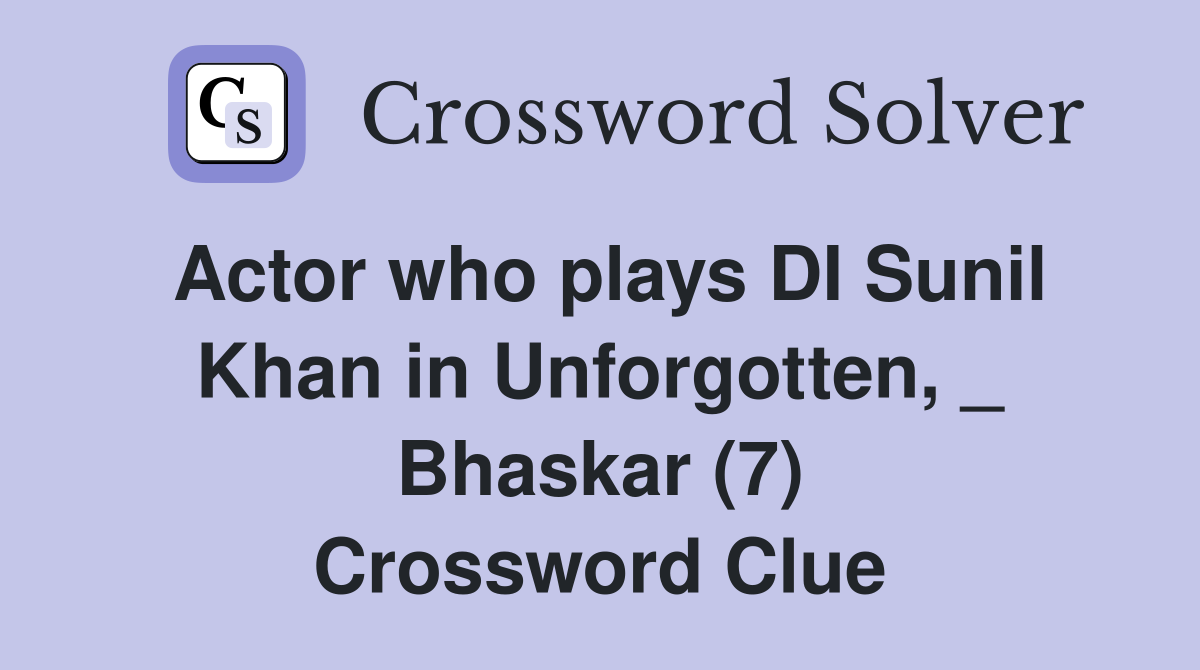 Actor who plays DI Sunil Khan in Unforgotten Bhaskar (7) Crossword