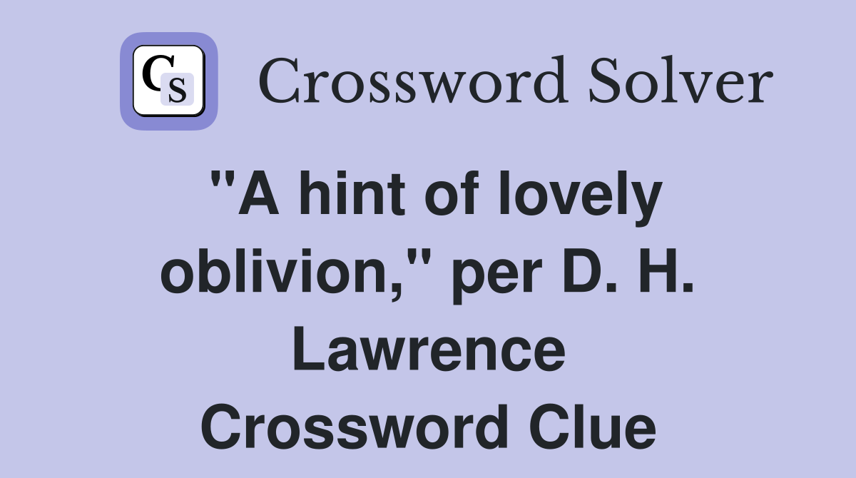 quot A hint of lovely oblivion quot per D H Lawrence Crossword Clue