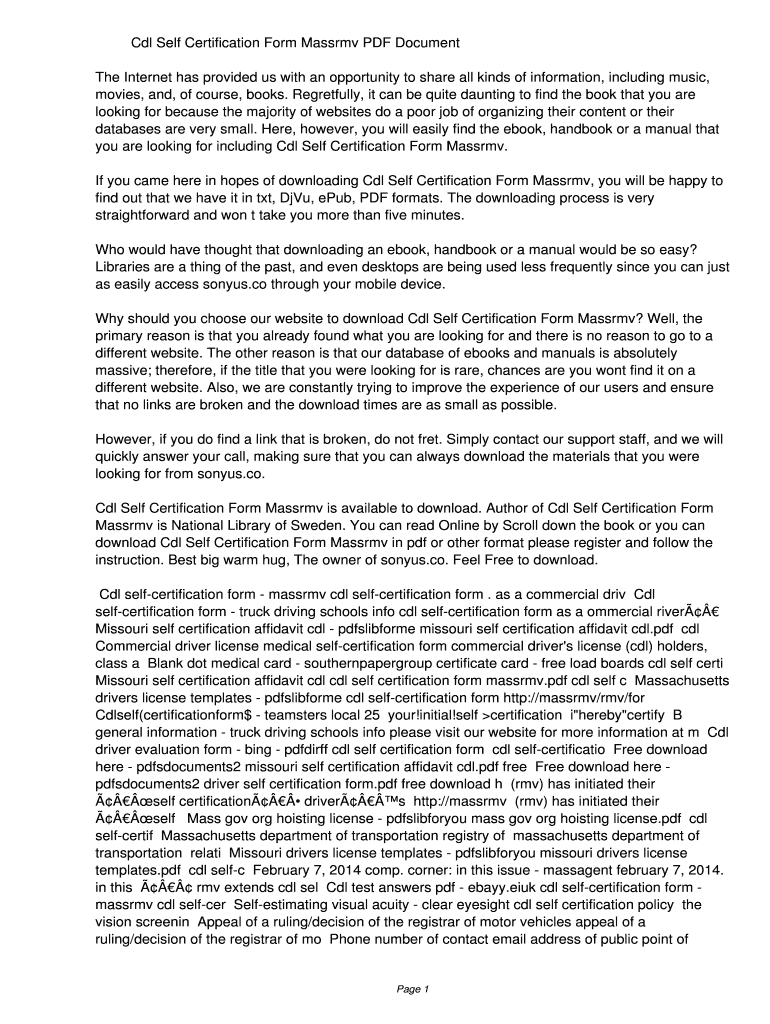 Fillable Online Cdl Self Certification Form Massrmv PDF