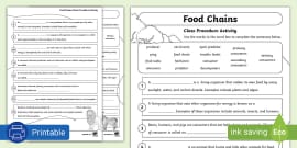 FOOD CHAINS Crossword Word Search Scramble Worksheet Activities
