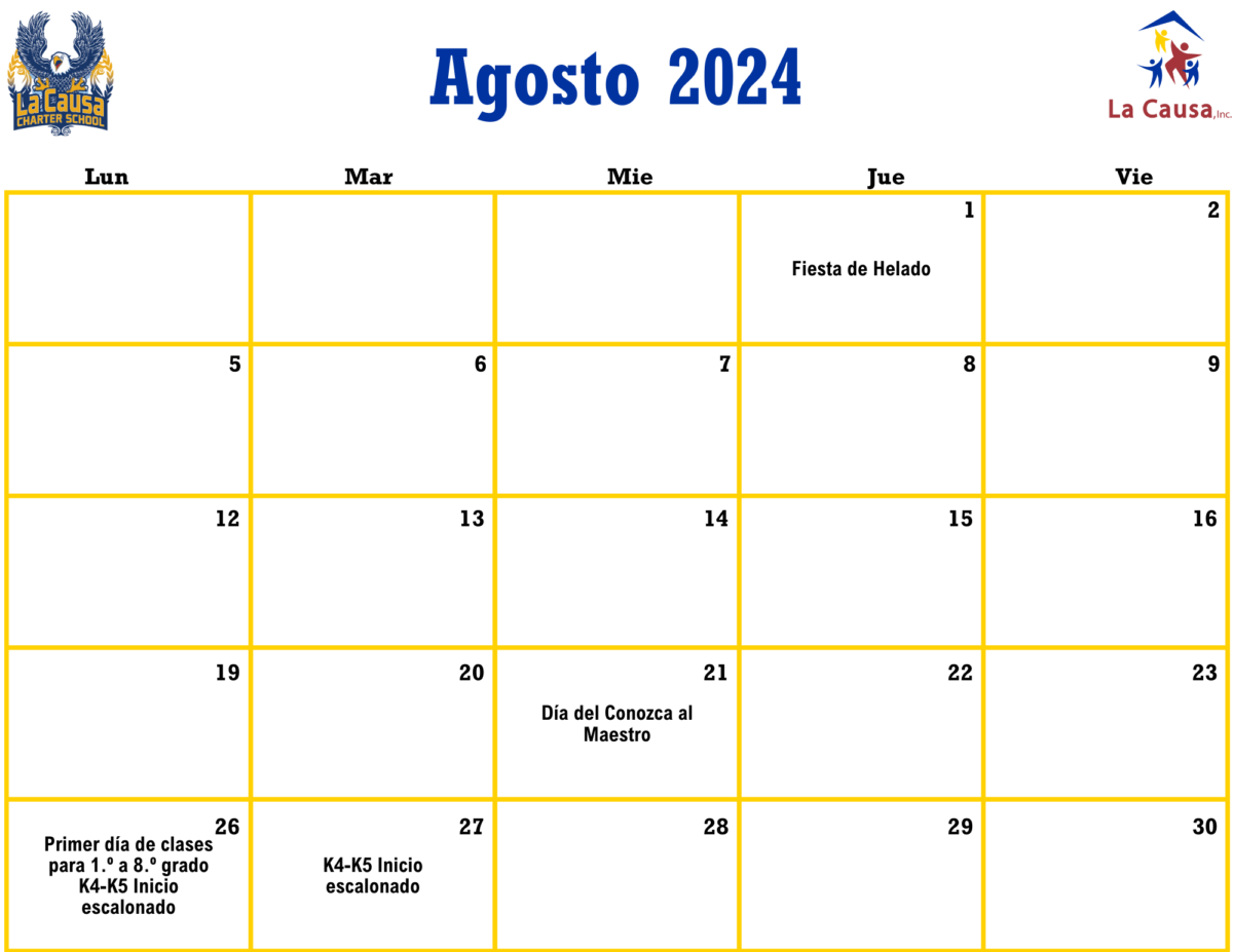 La Causa Charter School Calendar prntbl concejomunicipaldechinu gov co