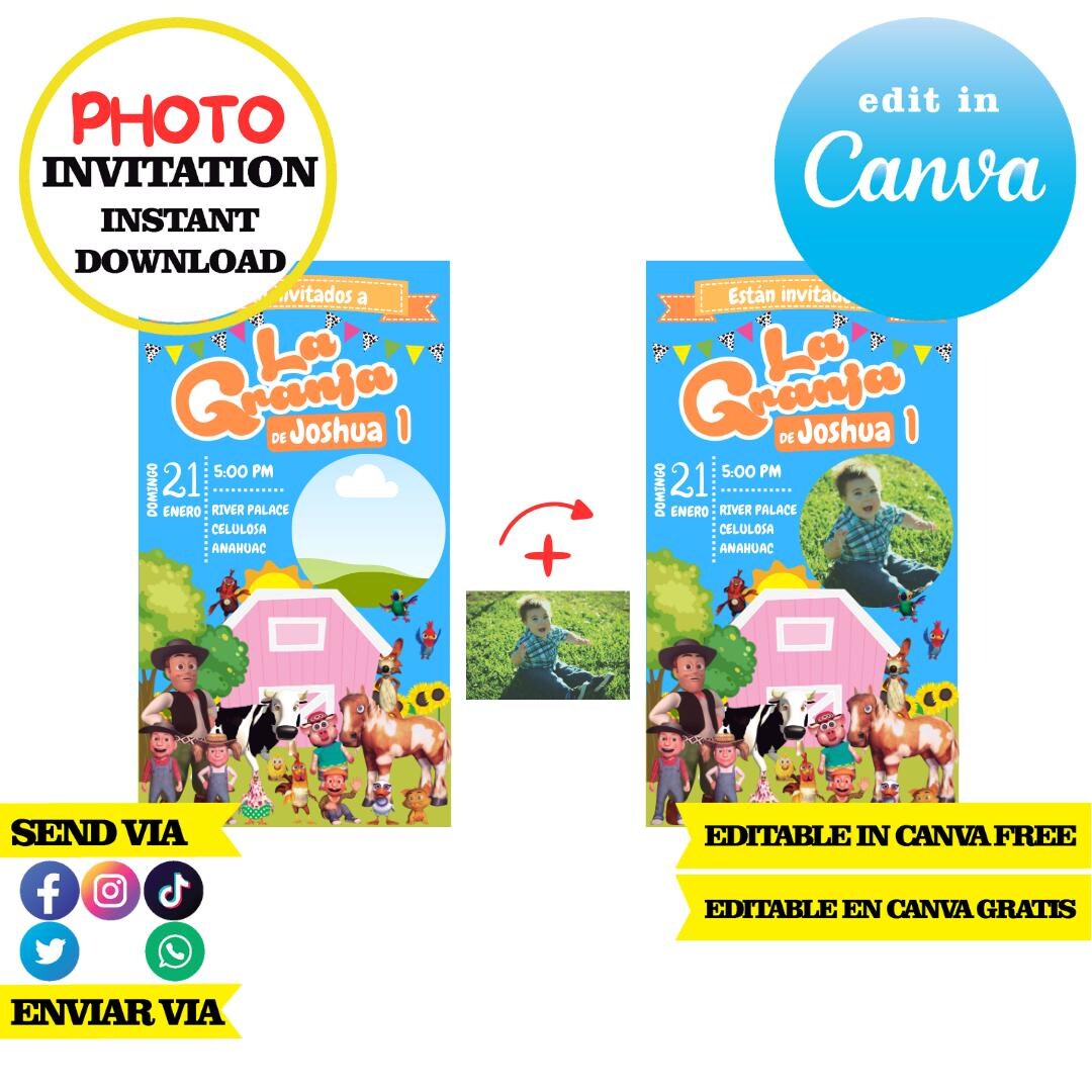 La Granja De Zenón Editable PHOTO Invitation Template in Canva Free