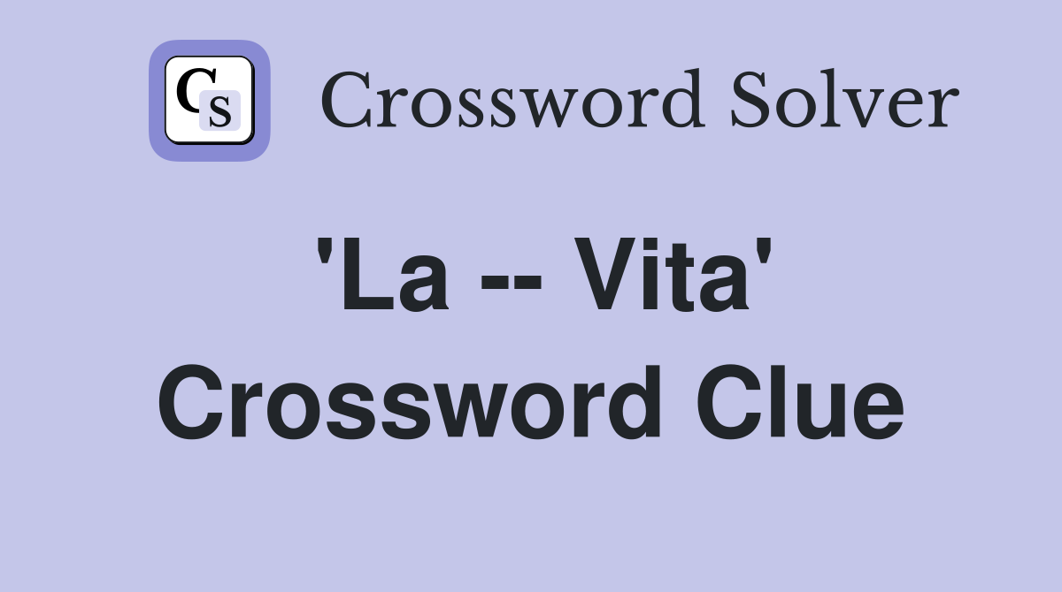 La Vita Crossword Clue Answers Crossword Solver