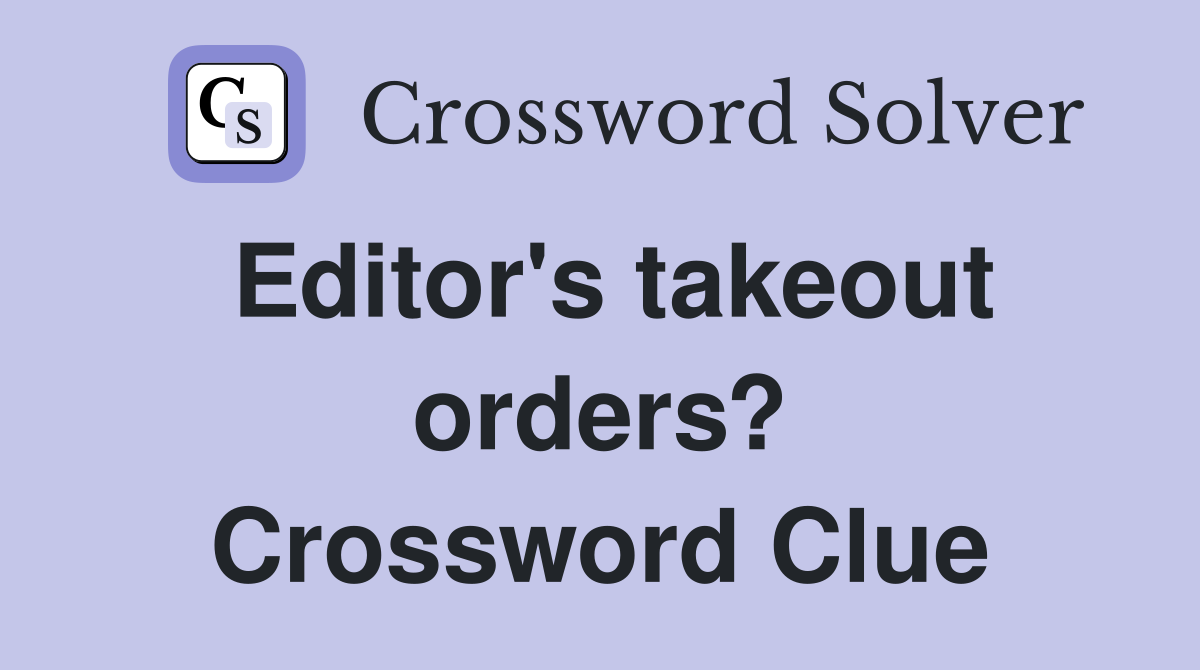 Editor #39 s takeout orders? Crossword Clue Answers Crossword Solver