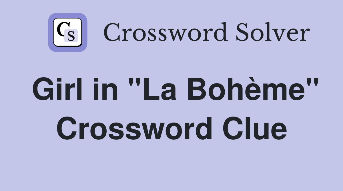 Girl in quot La Bohème quot Crossword Clue Answers Crossword Solver