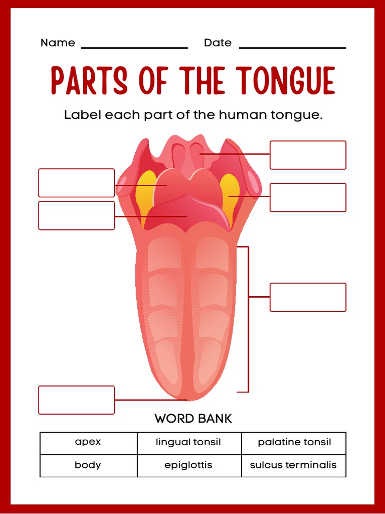 Parts Of The Tongue Worksheet