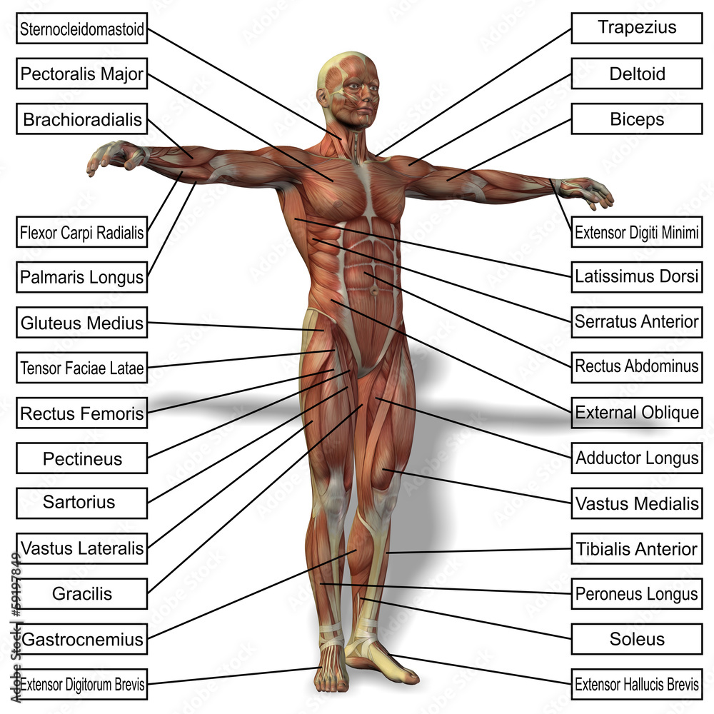 3D human man anatomy with muscles text Stock Illustration Adobe Stock