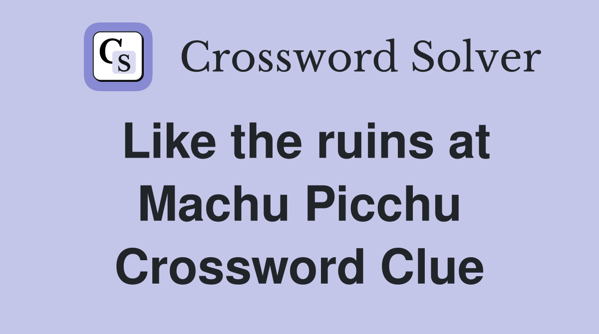 Like the ruins at Machu Picchu Crossword Clue Answers Crossword Solver