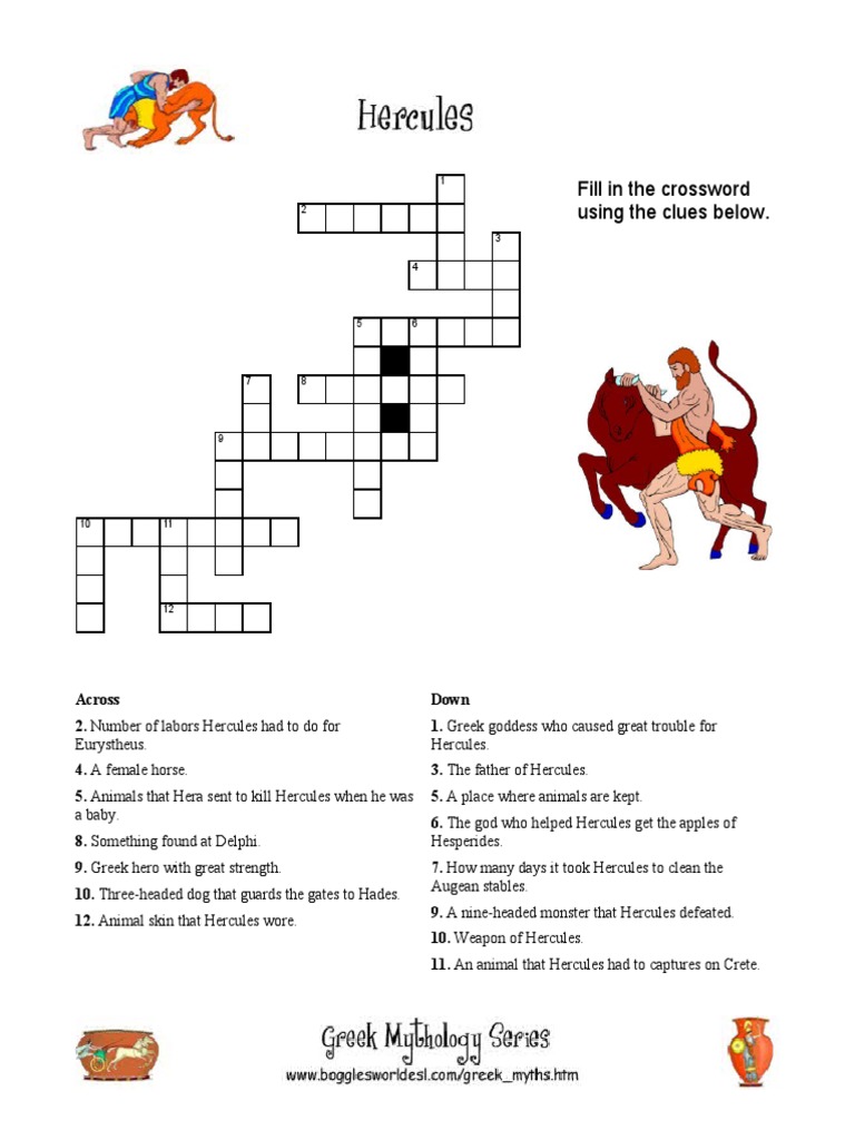 Hercules Crossword by Mr Smythology TPT