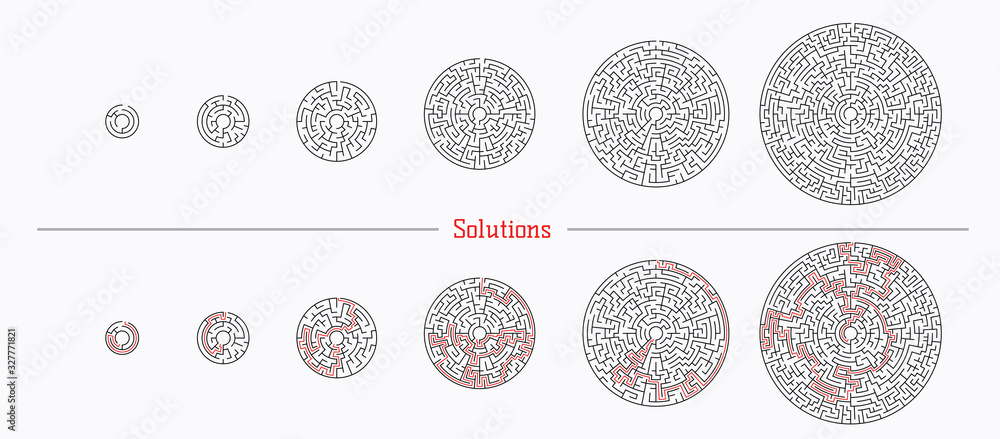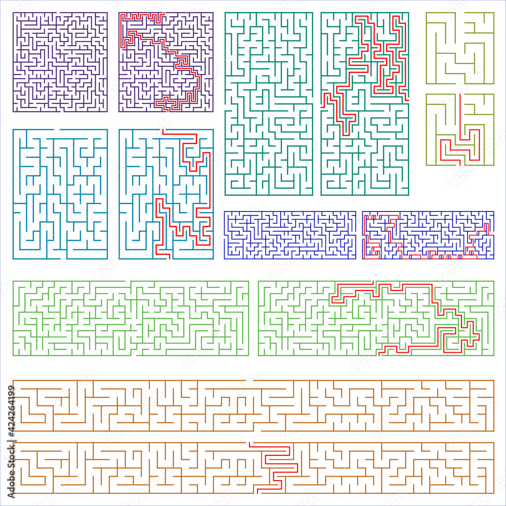 Labyrinth Templates with Solution in Red Stock Vector Illustration of