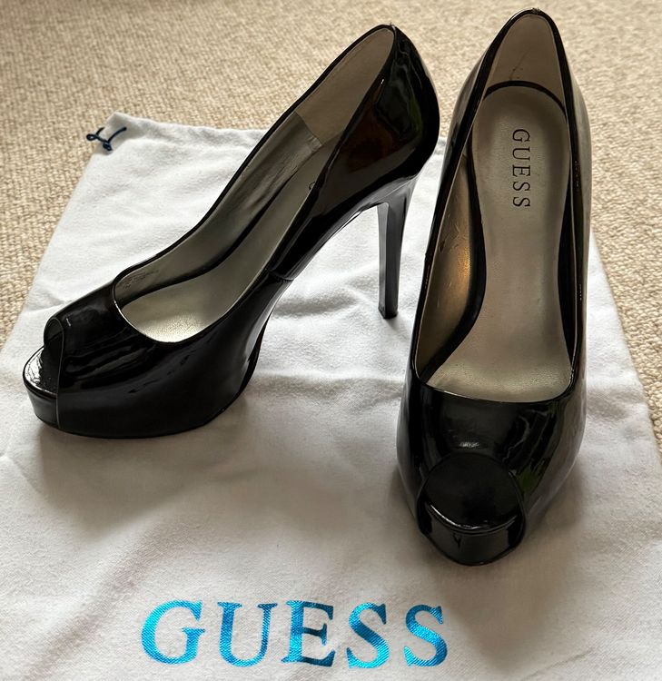 Guess Lack Pumps schwarz Grösse 37 Peep Toe Top (Gebraucht) in