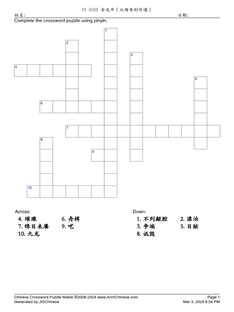 Pinyin Crossword Puzzle Maker PDF Puzzles Games Of Mental Skill