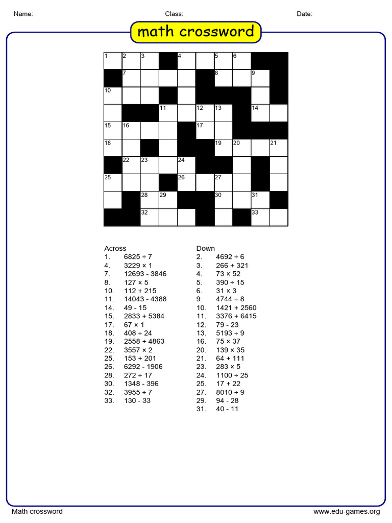 Math Crossword Puzzle Download Free PDF Puzzles Games Of Mental Skill