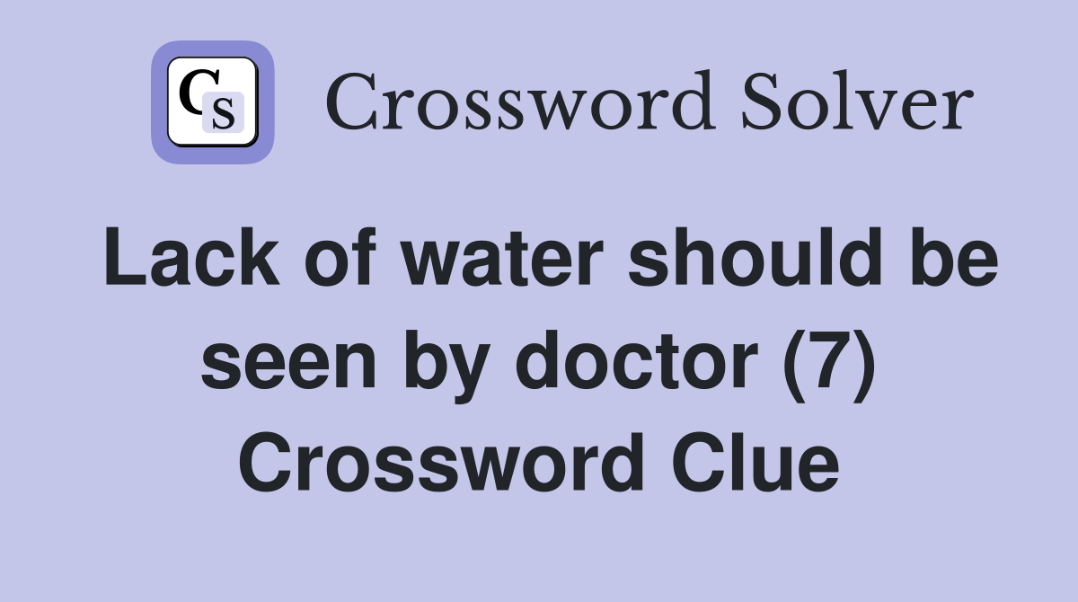 Lack of water should be seen by doctor (7) Crossword Clue Answers