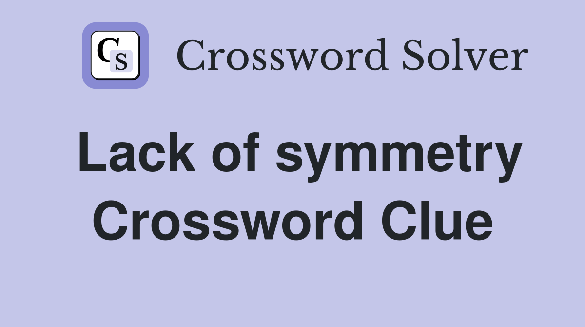 Lack of symmetry Crossword Clue Answers Crossword Solver
