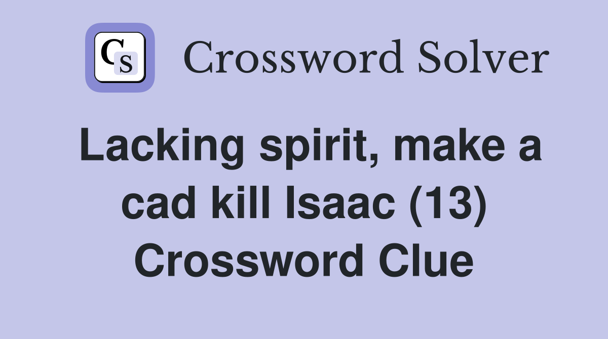 Lacking spirit make a cad kill Isaac (13) Crossword Clue Answers