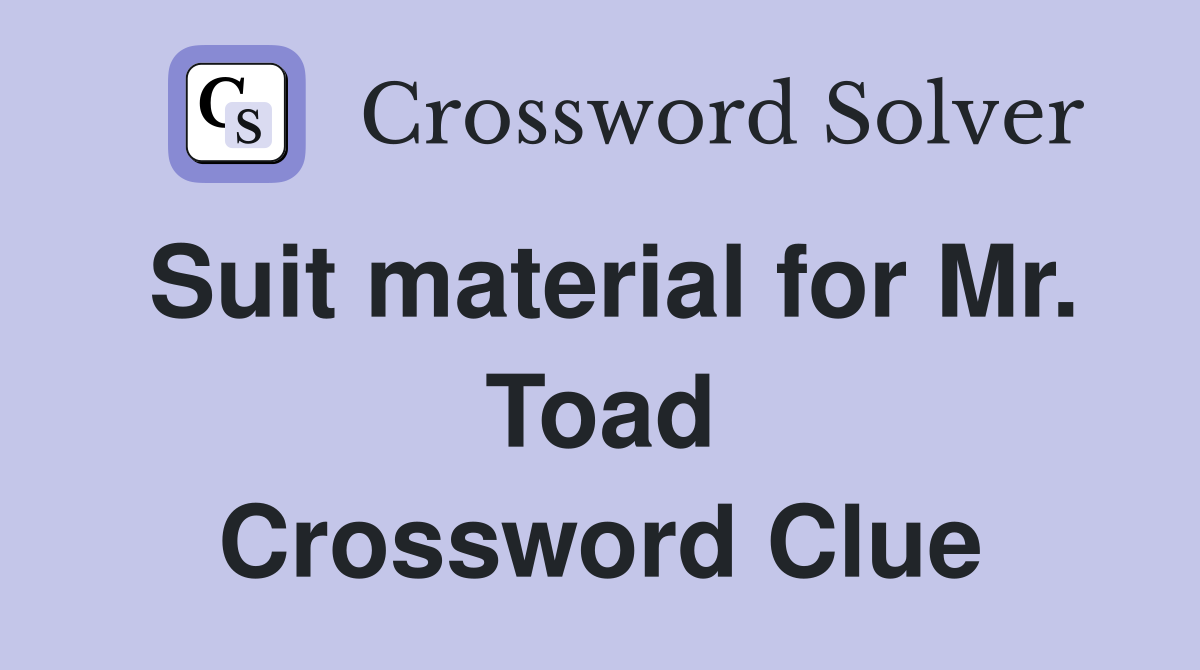 Suit material for Mr Toad Crossword Clue Answers Crossword Solver